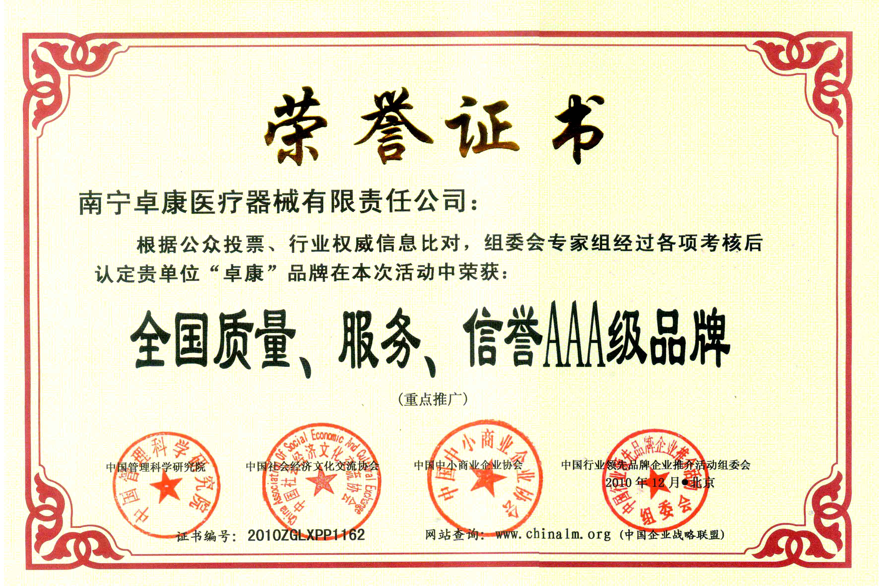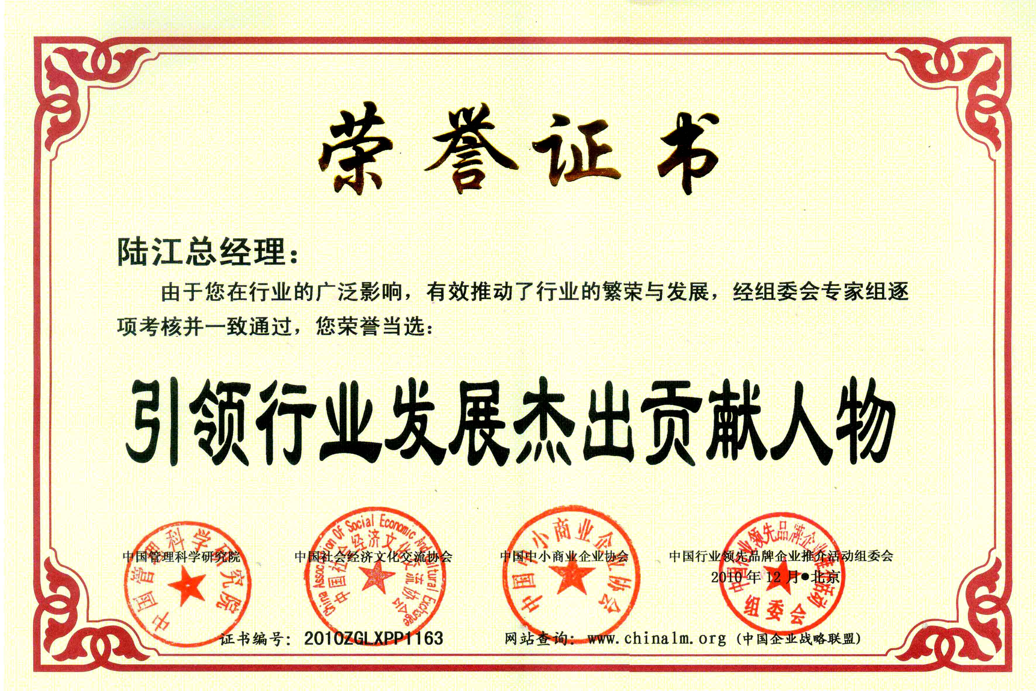 陸江榮獲引領(lǐng)行業(yè)發(fā)展杰出貢獻(xiàn)人物證書 --------卓康公司榮獲全國質(zhì)量、服務(wù)、信譽(yù)AAA級品牌證書